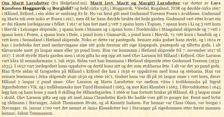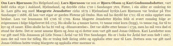 …..Tore Torgeirson (f. ca. 1660 i Vidvei) gift med Marta Olsdtr født i Øvre Tveitane.