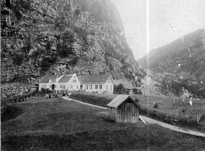 Bildet viser Ytre Eiane litt før 1900. Kårhuset er under bygging.