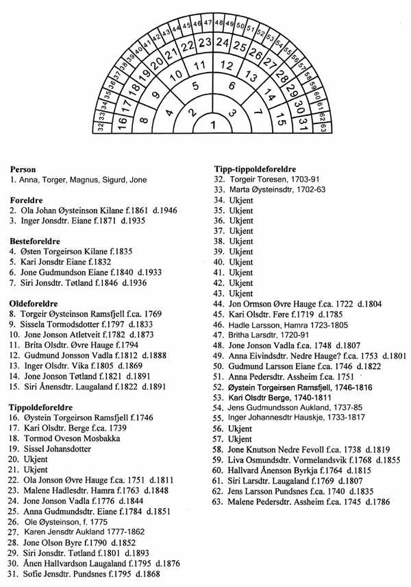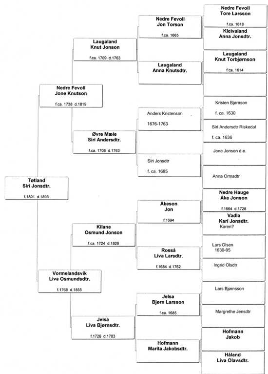 Siri Jonsdtr Tøtland (nr 29) sine aner