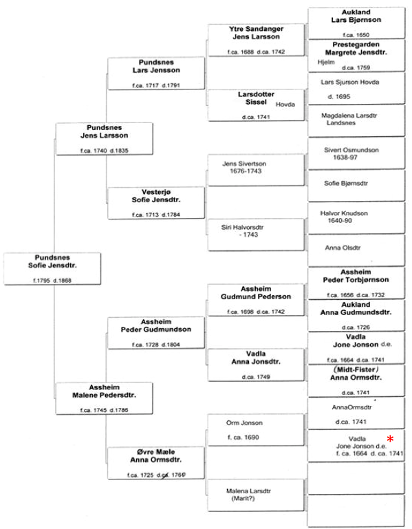 Sofie Jensdtr Pundsnes (nr 31) sine forfedre (for stjerne; se kommentar)